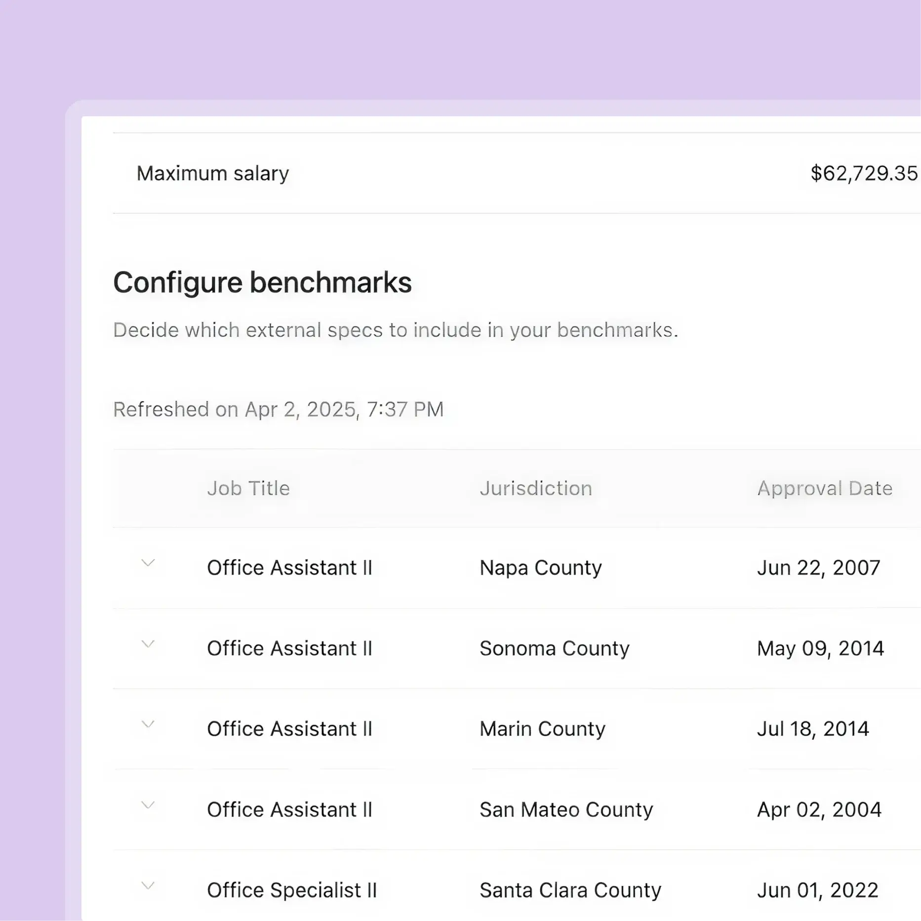 Access salary data from thousands of peer jurisdictions. Proprietary similarity algorithms map job duties—not just titles—for unprecedented accuracy. No more combing class specs to understand which ones are actually similar to each other - just open the platform and see your top matches.